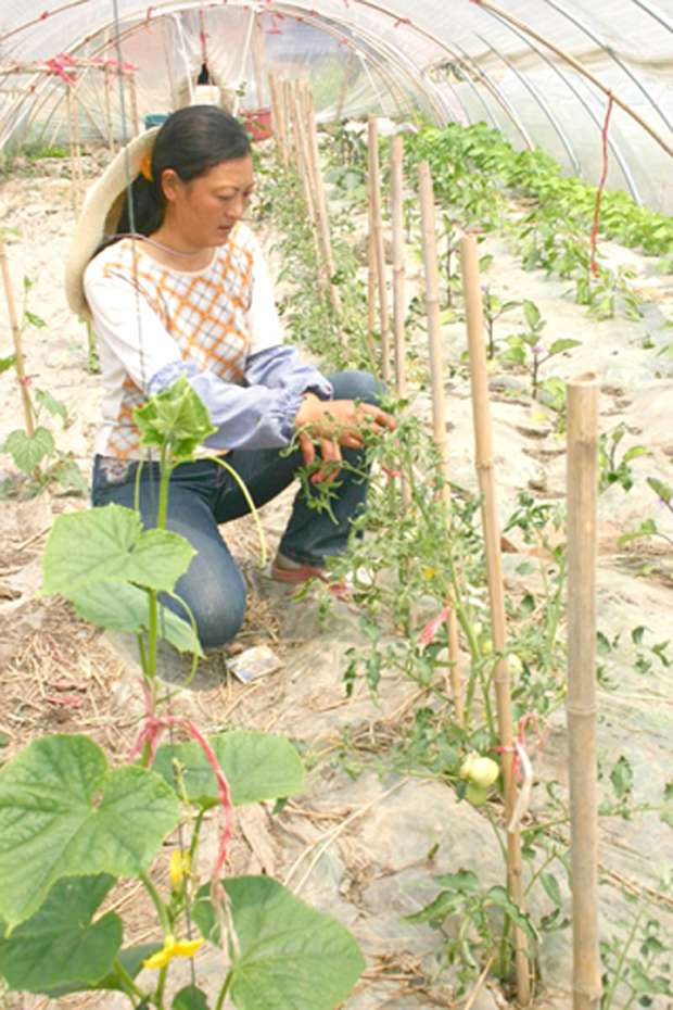 图为管理人员加强田间蔬菜管理。