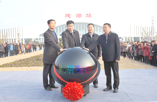 12月16日上午,建湖高铁综合客运枢纽开通运营。县委书记陈平讲话并宣布建湖高铁综合客运枢纽开通运营,与北京市政集团总公司总经理汪波及县领导张连国、俞进虎共同启动水晶球。许刚等县四套班子领导参加活动。