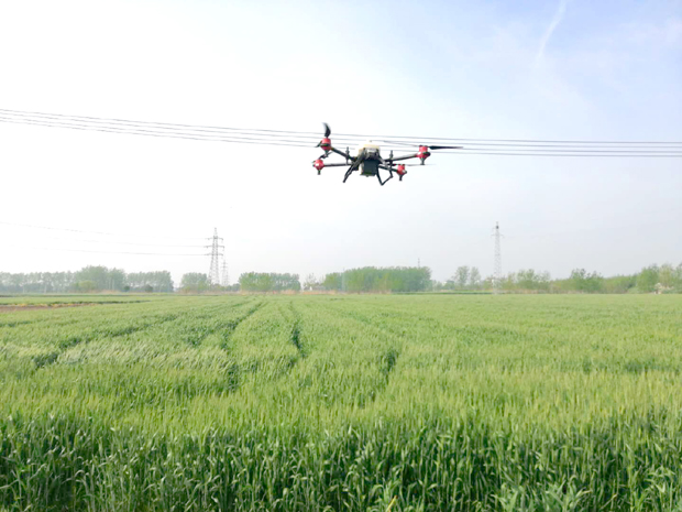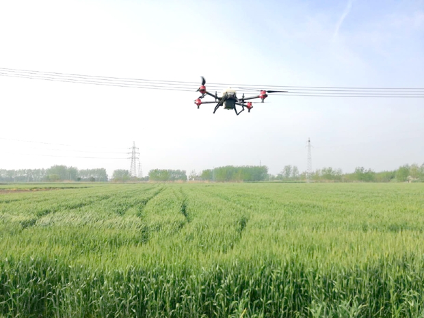 4月20日,在颜单镇三虹村田间地头,一架无人机在小麦田上空喷施药物,开展小麦赤霉病防治。为扎实做好小麦赤霉病防治,该镇动用新型机械,不仅喷洒药物均匀,而且节约人工成本。截至目前,全镇达到防治条件的田块都普遍用药防治了一遍。金学萍 夏旭伟 汤义林摄