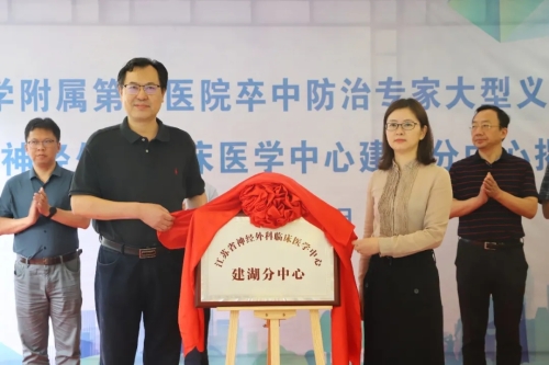 副县长周戍和王中教授共同为“江苏省神经外科临床医学中心建湖分中心”揭牌。