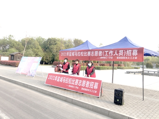 为积极支持和响应盐马大赛,充分展示和提振城市发展精气神,受赛事组委会委托,县阳光义工之家作为指定的志愿者服务组织,通过网上发帖、摆摊设点、微信接龙、集中报名等形式第一时间完成120名志愿者招募任务。为保证服务质量,提升精准度,阳光义工之家还于赛前邀请市组委会专家专程来建湖,面向志愿者开展赛事培训和急救知识讲座。