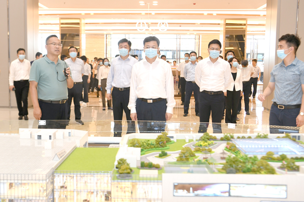 市委书记曹路宝(中)率领与会人员,观摩我县广益来财富广场项目。李思远 摄