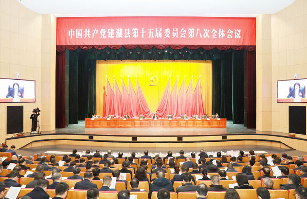 2024年12月31日,中国共产党建湖县第十五届委员会第八次全体会议举行。全会坚持以习近平新时代中国特色社会主义思想为指导,深入贯彻党的二十届三中全会、中央经济工作会议精神,全面落实省委十四届八次全会、省委经济工作会议、市委八届九次全会部署要求,回顾总结2024年工作,部署安排2025年任务,动员全县上下坚定不移推进改革赋能、绿色转型,高质量完成“十四五”规划目标任务,加快建设江淮绿心、打造千亿之城。