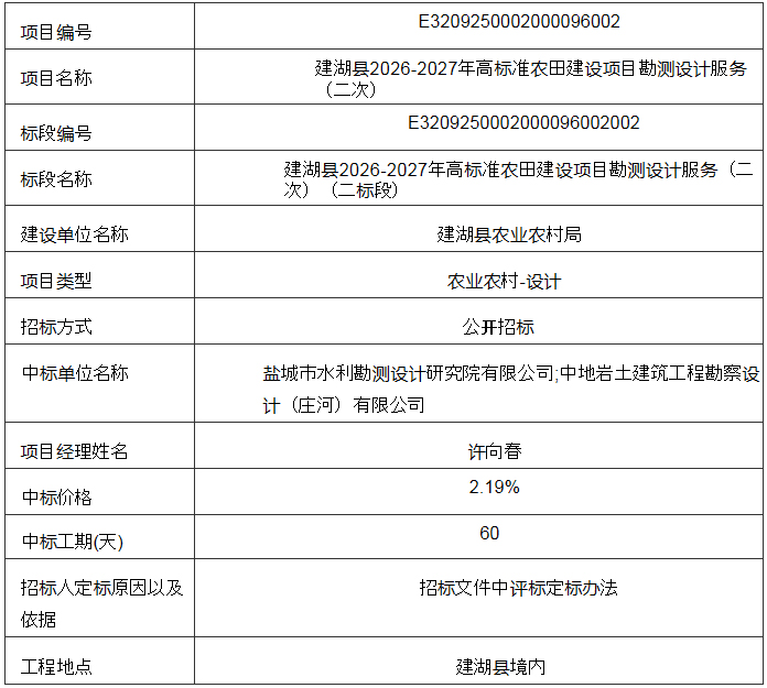 建湖县2026-2027年高标准农田建设项目勘测设计服务(二次)(二标段)